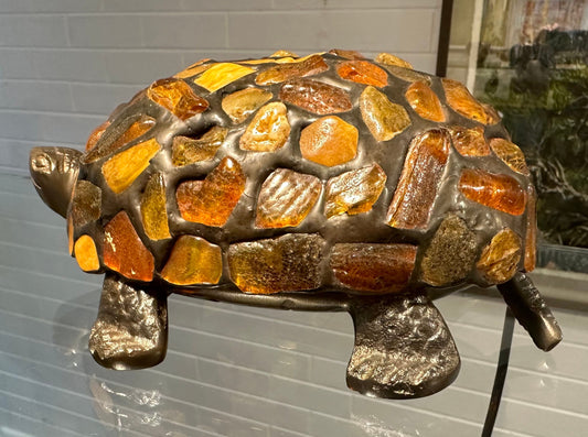 Handmade Tiffany Style Amber Turtle Lamp