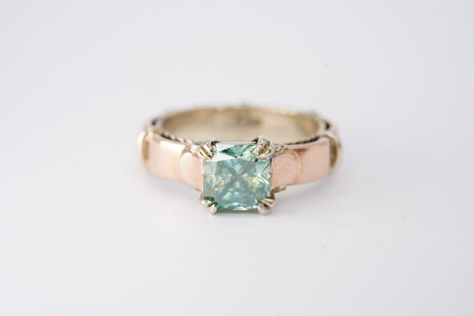 White and Rose Gold Blue Moissanite Modern Dress Ring