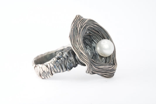 Silver and Pearl Nest Ring
