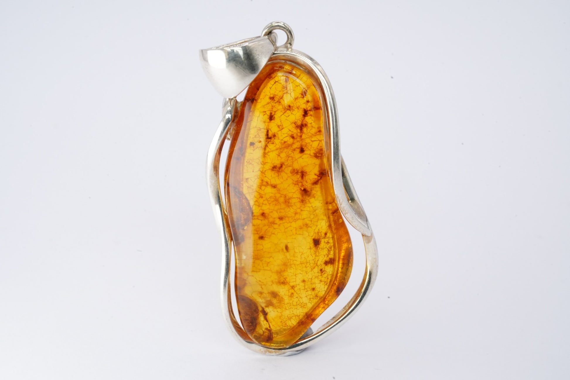 This striking pendant showcases authentic Baltic Sea amber, prized for its warm, honey-rich hues and millions of years of natural history. Set in sterling silver with refined craftsmanship, the generous stone commands attention while maintaining elegant sophistication. The substantial size makes it a statement piece suitable for both everyday wear and special occasions. Baltic amber is renowned for its unique properties and timeless appeal, making this pendant a meaningful investment in classic jewellery. Perfect for those who appreciate genuine gemstones and distinctive design.